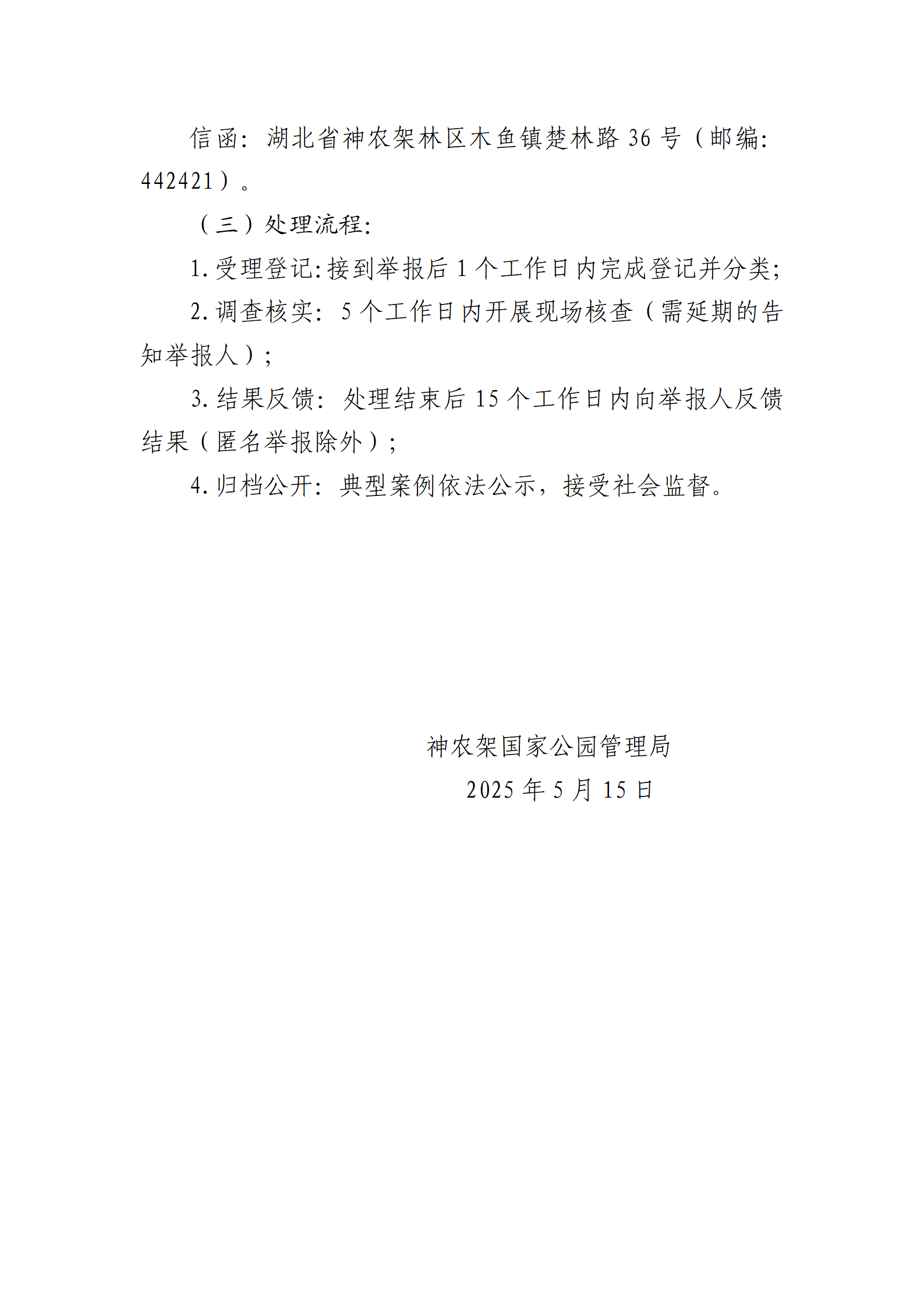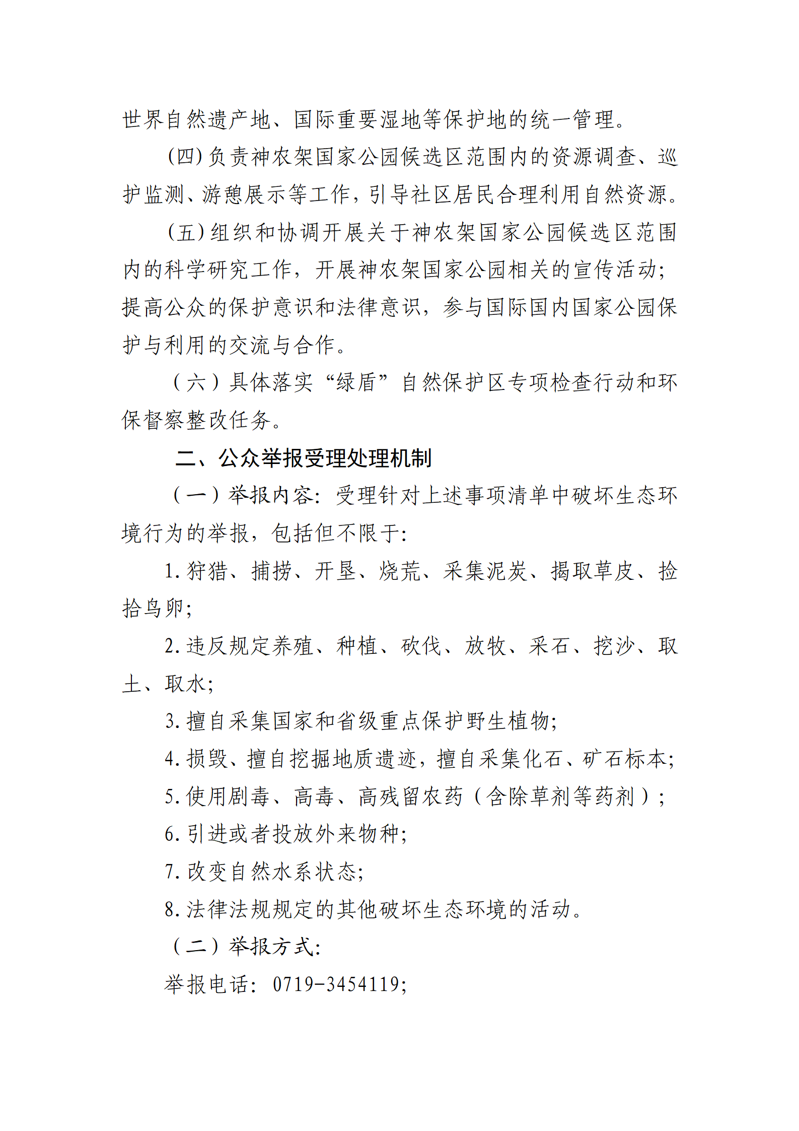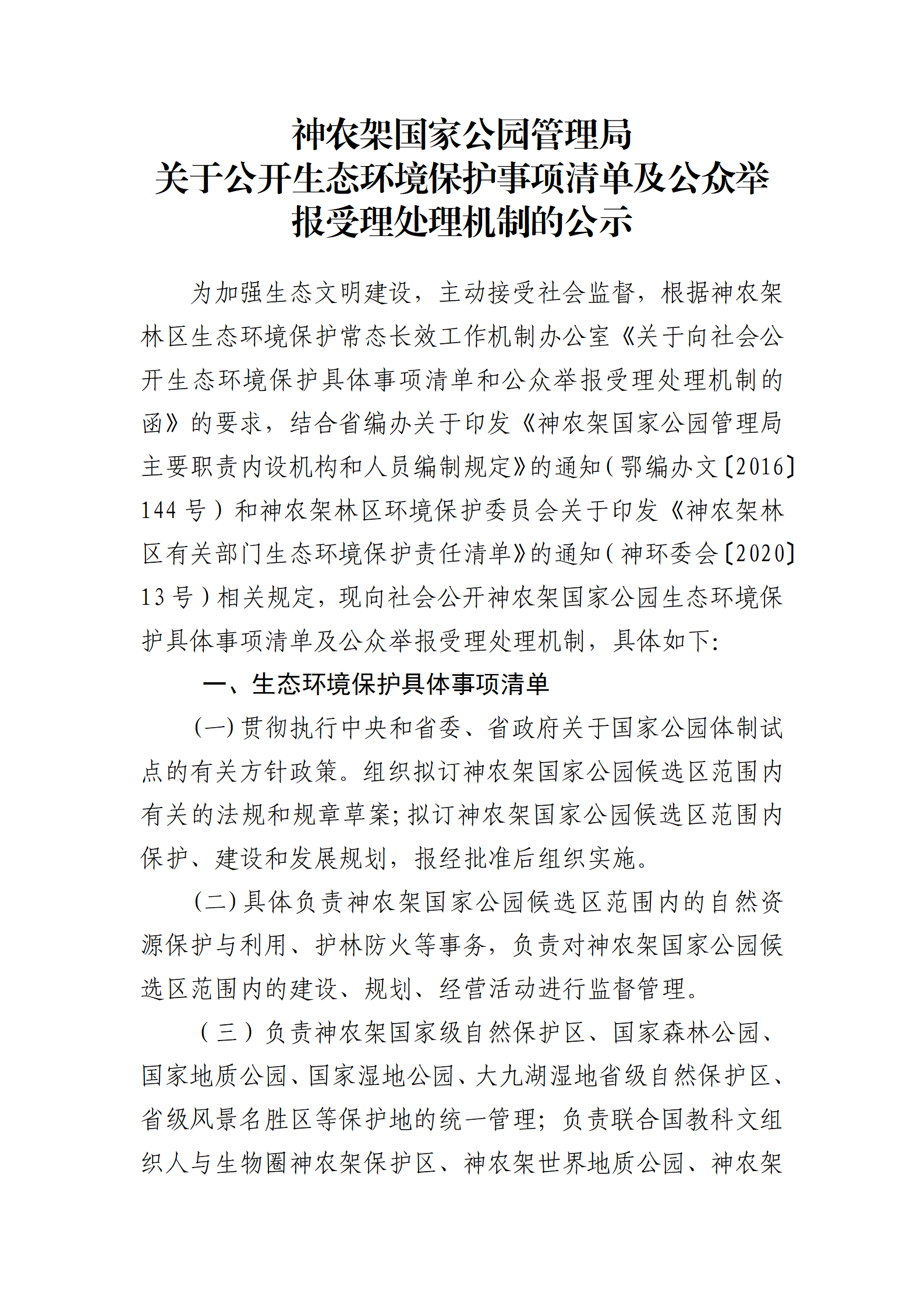 神農(nóng)架國家公園管理局關(guān)于公開生態(tài)環(huán)境保護事項清單及公眾舉報受理處理機制的公示